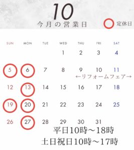 10月の営業日のお知らせでございます。