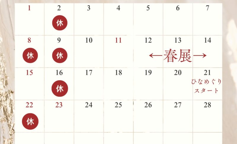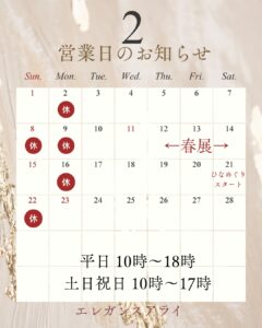 2月の営業日のお知らせ